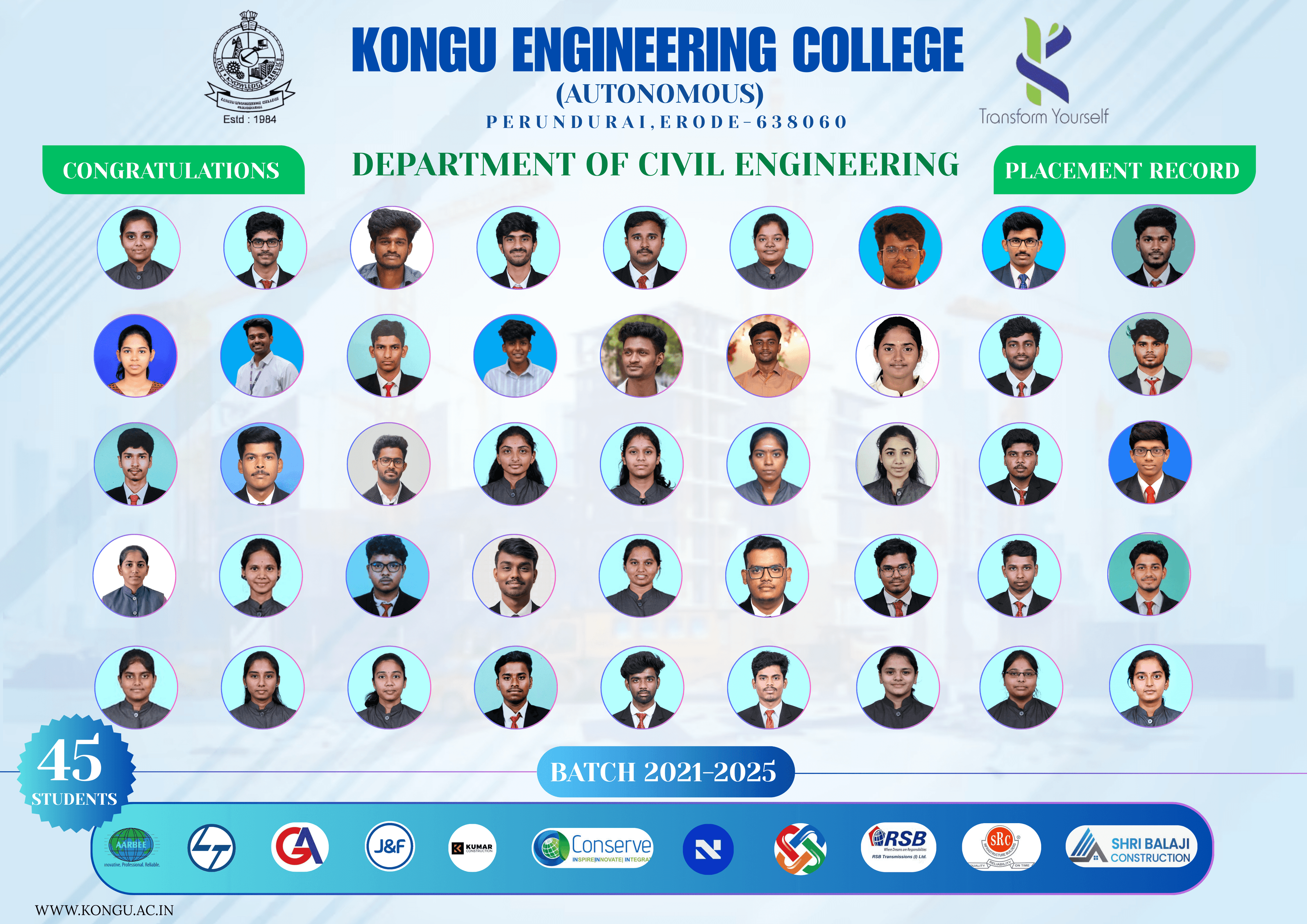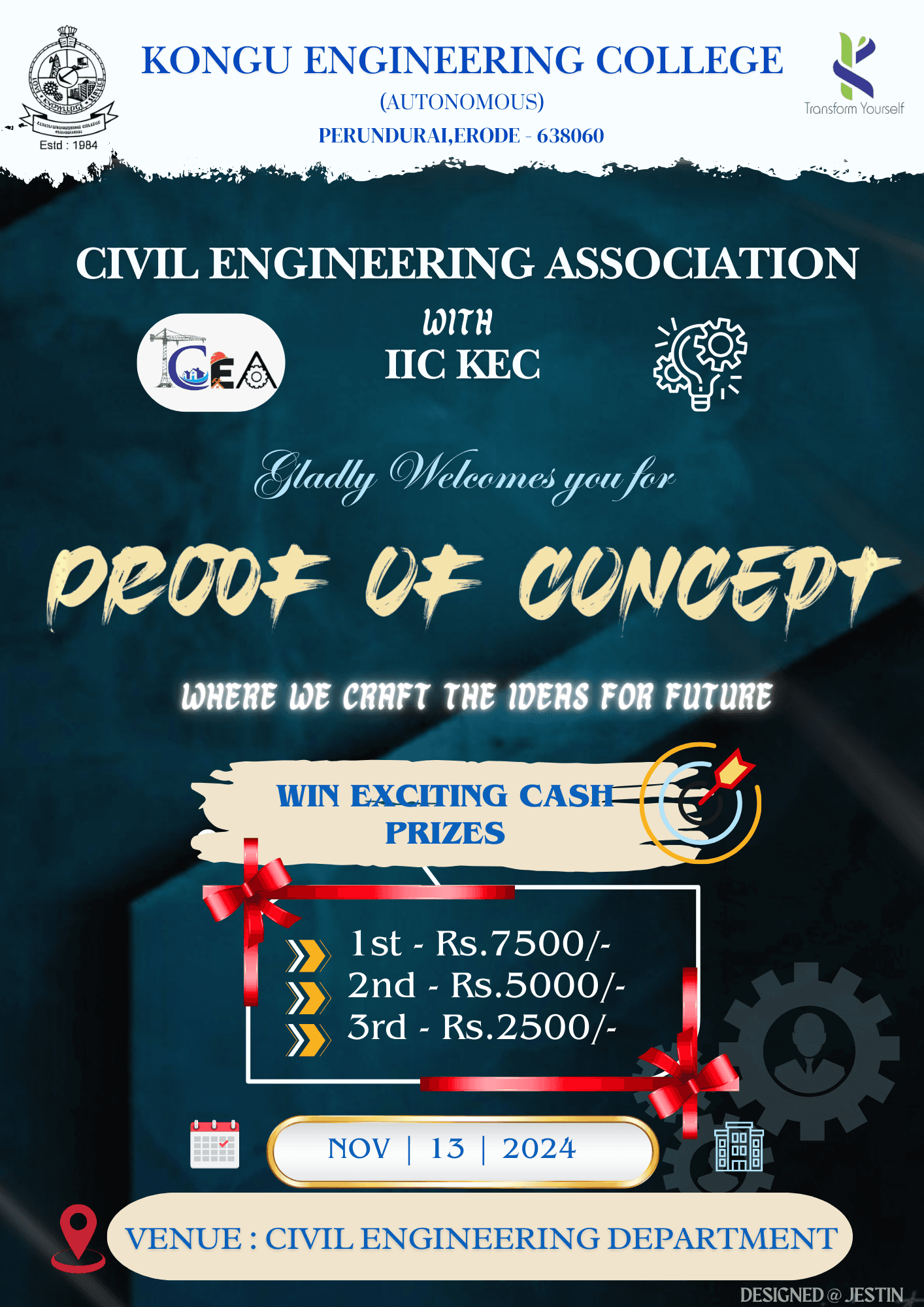 I’m currently pursuing my B.E. in Civil Engineering at Kongu Engineering College (2023–2027 batch), and for me, engineering goes far beyond textbooks and site visits. It’s about turning ideas into real-world solutions—with precision, purpose, and a touch of creativity.